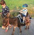 Hoch zu Esel - Kinder können ihr ersten Erfahrungen sammeln, wie es sich auf einem Eselrücken anfühlt. Durch einen eigens angefertigten